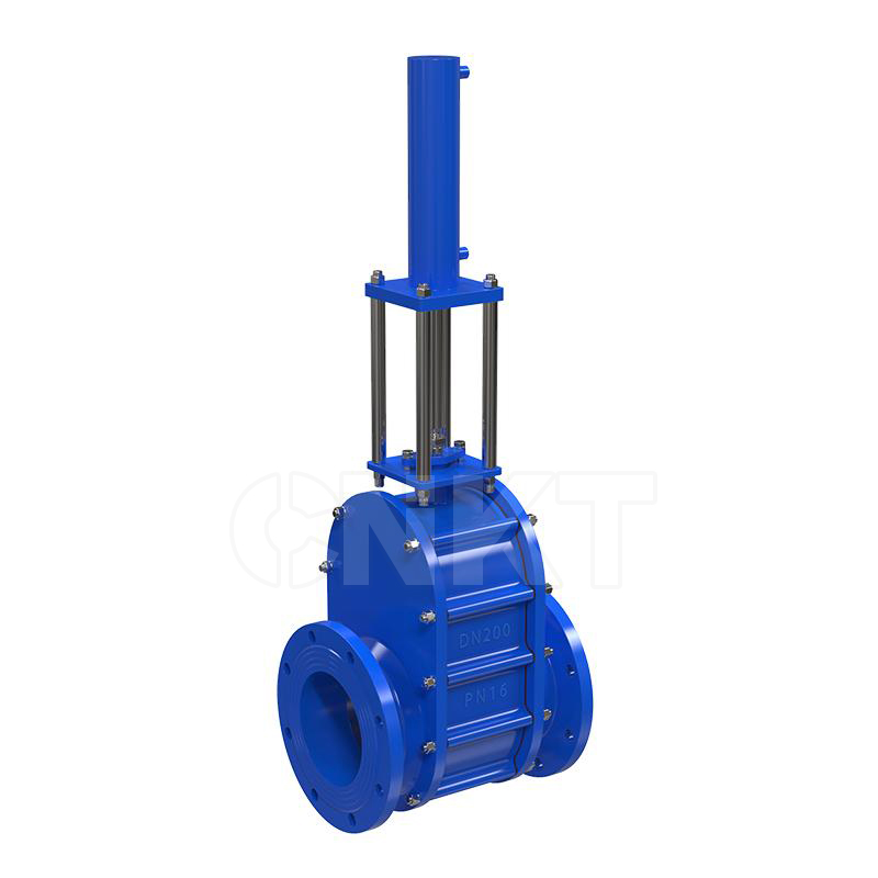 電動雙閘板閥當氣源從上進氣口通入時,閥桿帶動閥板向下運動,閥門關閉。當氣源從下進氣口通入時,閥桿帶動閥板向上運動,閥門開啟。閥板與閥座之間加載彈簧,彈簧彈力始終使閥板壓向閥座保證閥門的密封性,又容許閥板在垂直上下方向移動,這有助于補償閥門零件的熱脹冷縮,并能克服任何背壓變化對密封的影響與防止顆粒介質進入兩密封面之間。在啟閉過程中,閥板能產生自轉,使得密封面之間產生研磨、拋光作用,而且由于閥體對通道偏心,在開啟排卸物料時,會產生渦流,形成的物料旋渦會自行清掃閥門內腔。氣動陶瓷雙閘板閘閥為雙閘板單密封,獨特的下閥體斜面設計,保證閥門內腔不積灰。所有的這些特點,使得氣動陶瓷雙閘板閘閥具有超長的使用壽命,為您的系統安全運行提供了可靠的保證。